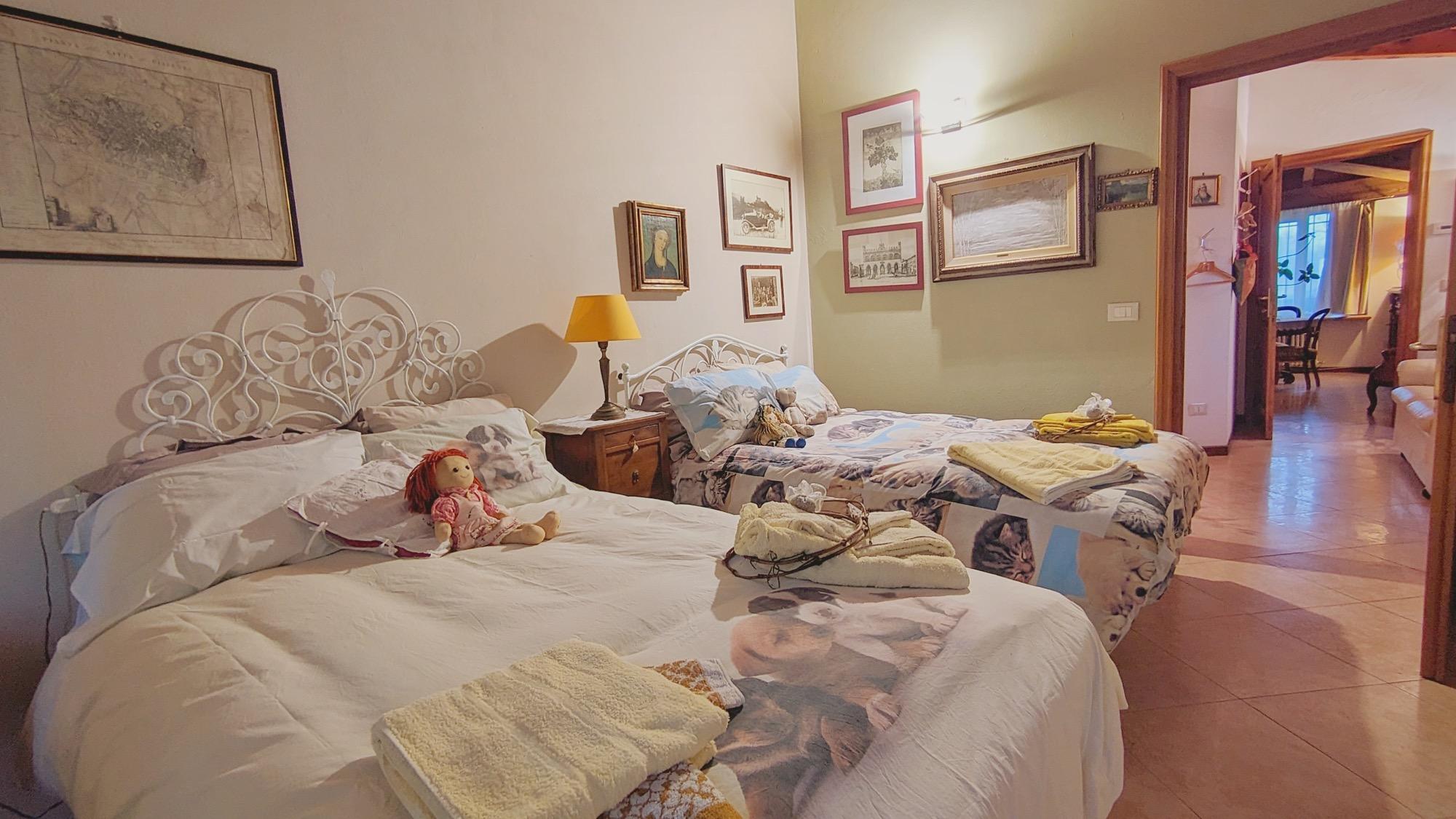 Gli ospiti possono decidere se soggiornare in una sola camera oppure riservare l’intera dimora, comprendente tre stanze, salotto e cucina. Ogni sistemazione ha ingresso indipendente rispetto alla casa principale ed è dotata di bagno privato. Le camere Nicchio e Solata si trovano al piano superiore, mentre la Ronchello è al piano terra e accoglie anche animali domestici. Le finestre si affacciano sul paesaggio naturale circostante o sulle architetture del borgo medievale, regalando scorci suggestivi in ogni momento della giornata.